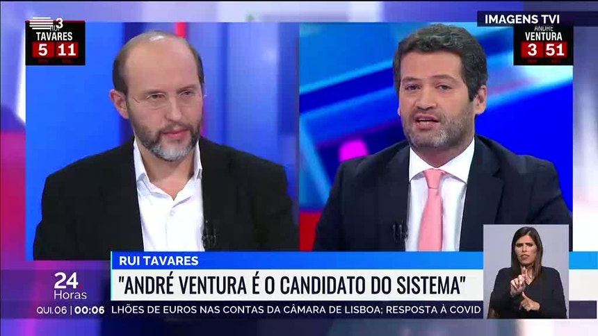 Rui Tavares acusa Ventura de ser "candidato do sistema" e líder do Chega considera "anacrónico" programa do Livre
