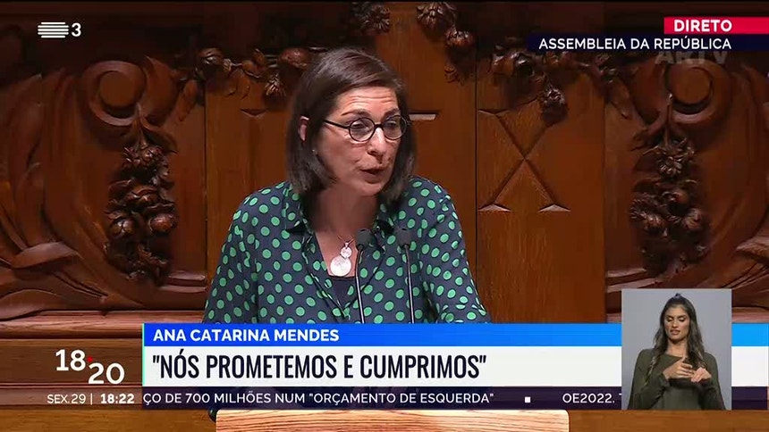 Ana Catarina Mendes lembra o Parlamento que o anterior executivo apresentou ao Parlamento um Orçamento positivo para os portugueses. A ministra Adjunta e dos Assuntos Parlamentares assume que o atual documento é igual no que tinha de ser igual e é diferente no que tinha de ser diferente, porque o mundo mudou, e que continua a ser um documento "de contas certas", o que estará a irritar a direita.