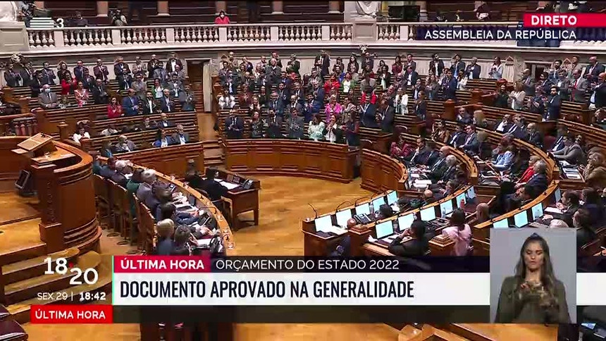 18h43 - O Orçamento do Estado 2022 foi aprovado pela maioria absoluta do PS com votos contra de PSD, Chega, IL, PCP e BE. PAN e Livre abstiveram-se.