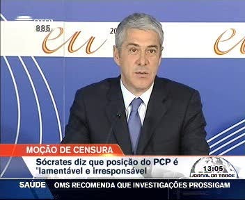 José Sócrates critica PCP pela apresentação da moção de censura. O primeiro-ministro considera "lamentável e condenável" a posição de "irresponsabilidade total do Partido Comunista Português".