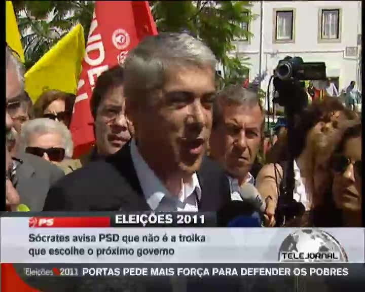 O secretário-geral do PS responde a Passos Coelho, dizendo que não é a "troika" que vai escolher o próximo Governo. José Sócrates falava no final de uma arruada no centro histórico de Santarém. António Vitorino até apelou ao voto dos social-democratas "desiludidos com este PSD".