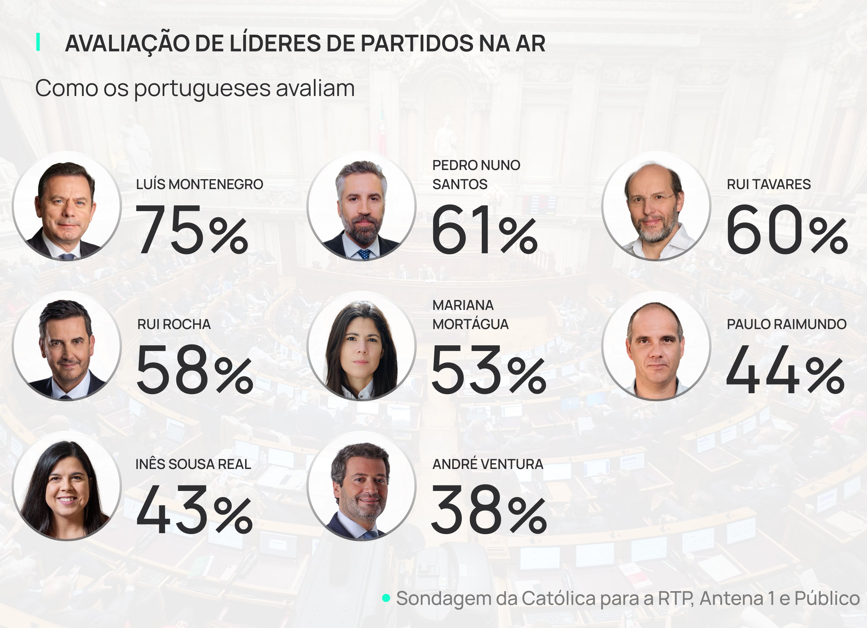 Pedro Nuno Santos e Rui Tavares também receberam uma boa avaliação, com 61% e 60% de avaliações positivas, respetivamente.