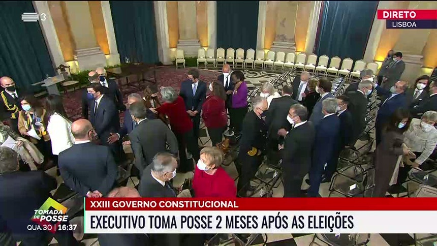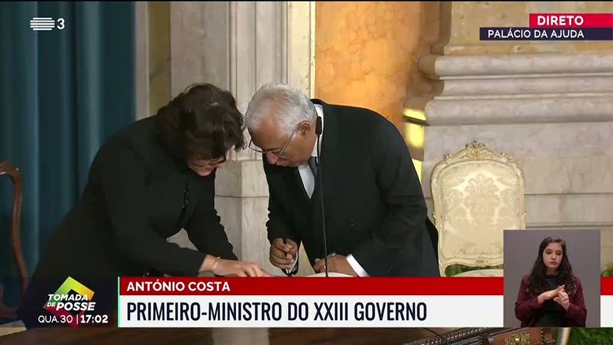 António Costa iniciou hoje o seu discurso de posse como primeiro-ministro do XXIII Governo Constitucional dirigindo palavras de "profunda gratidão" à equipa que cessou funções e que "enfrentou a tormenta" da pandemia da covid-19.