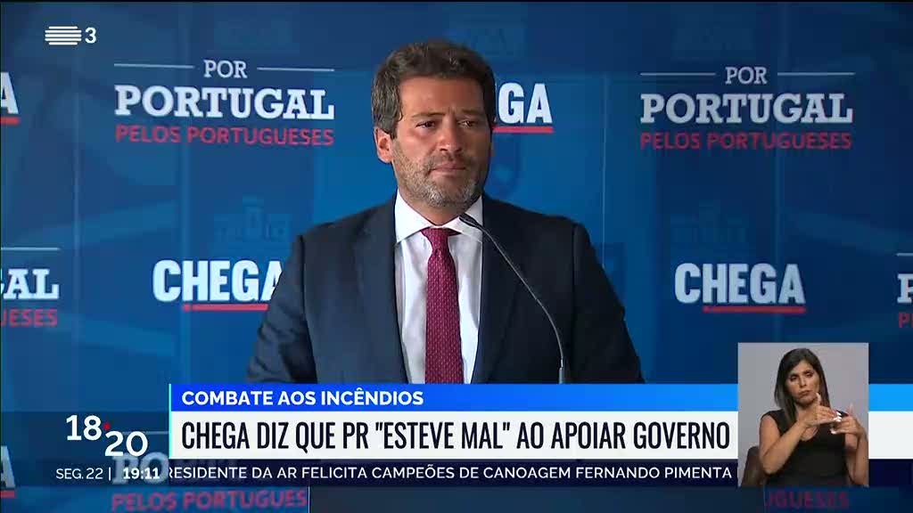 O líder do Chega considera que o presidente da República esteve mal ao apoiar e justificar a atuação do Governo nos incêndios.