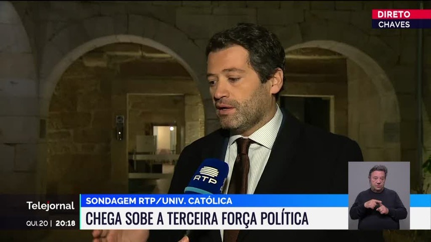 A sondagem da Católica para a RTP dá o Chega como terceira força política nas próximas legislativas. André Ventura usa os números para forçar o líder do PSD a admitir uma aliança com o seu partido num futuro governo.