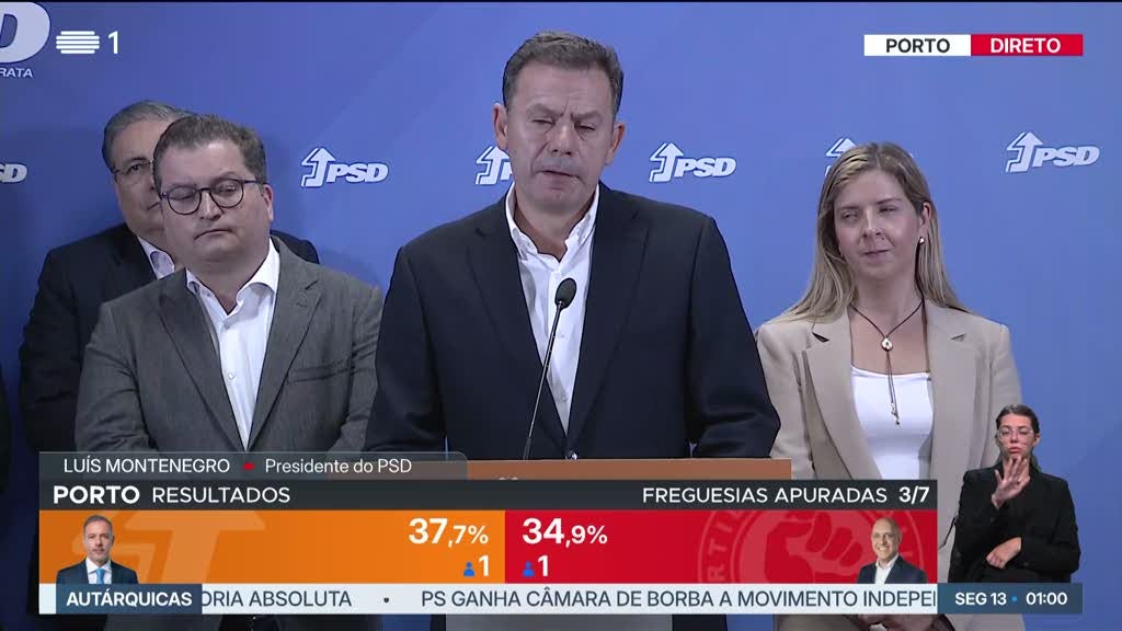 Montenegro realça a vitória do PSD "nos grandes centros urbanos" como Lisboa, Porto, Braga, Aveiro, Vila Nova de Gaia, Sintra e Cascais.