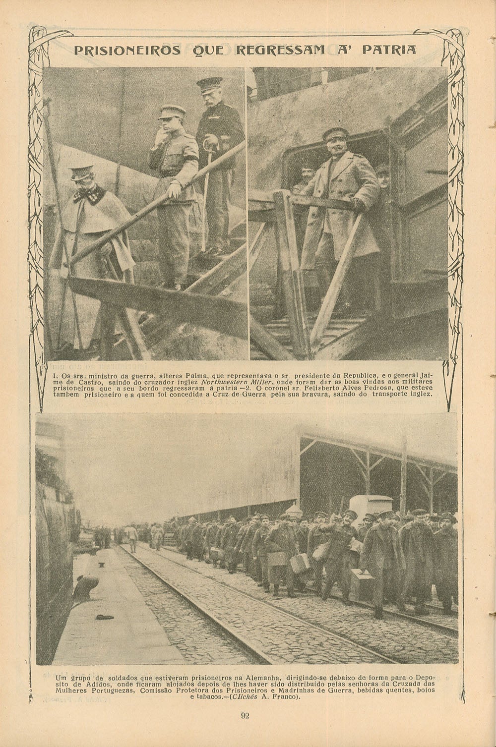 R.: Só em Janeiro de 1919 é que efectivamente eles foram repatriados. Primeiro foram reunidos na Alemanha, depois foram para a Holanda, com os passaportes, não sei se individualmente se em comboio se foi junto isso não sei. Entretanto vieram tomar o comboio a Paris e vieram para Portugal.