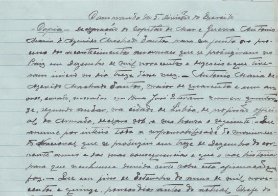 Preso no Forte de S. João da Barra, Machado Santos officer e gentleman revolucionário descreve as condições.