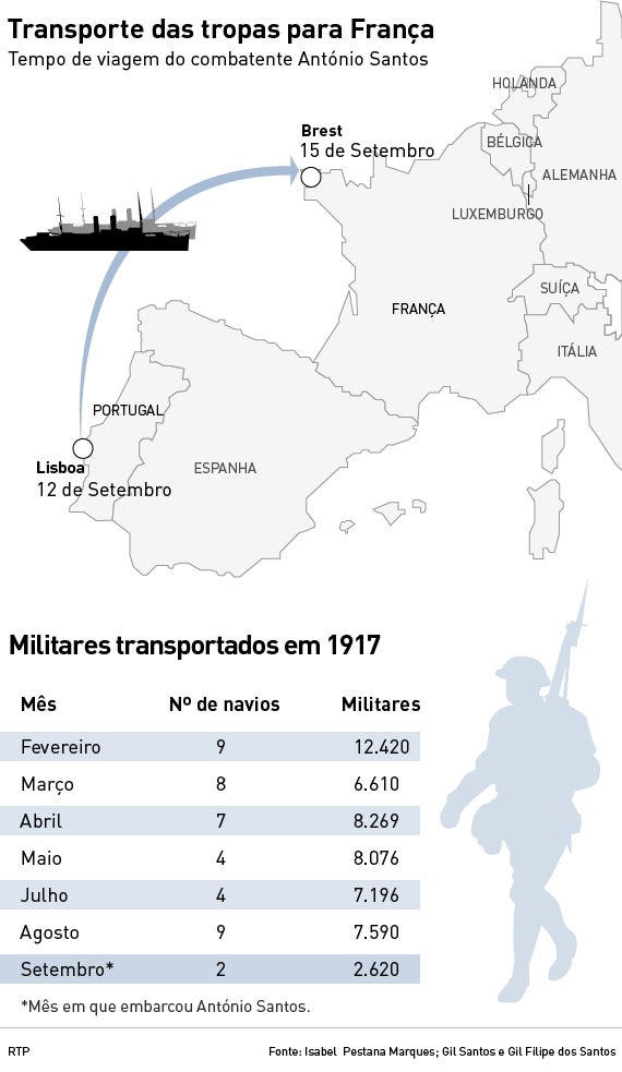 Chegou lá como muitos outros, bastante doente. Estamos a falar de uma pessoa que teria visto pela primeira vez o mar nessa viagem, aliás como muitos outros, o mar era uma coisa complicada. Uma viagem de 3 dias para a guerra devia ter sido de facto uma viagem muito atribulada, muito complicada.