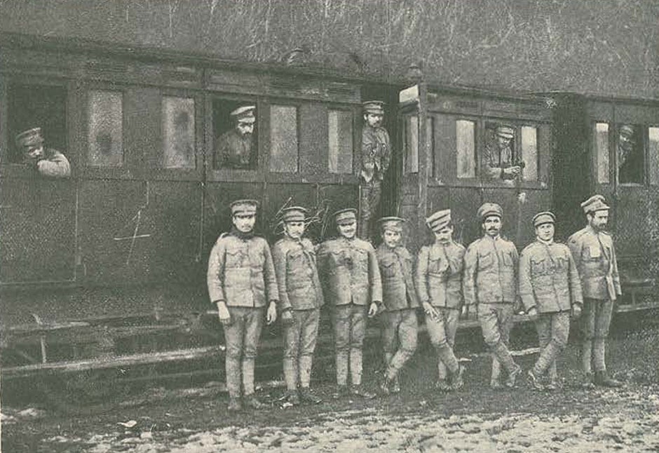R. Ele só foi a 29 de Agosto, incorporado em dois pelotões, que fizeram um percurso sui generis até Lisboa. Foram a pé de Chaves para Mirandela, para apanharem o comboio para Bragança, para incorporarem com o 30 de Bragança, com a Infantaria 30 de Bragança. E depois fizeram a viagem de comboio para Lisboa, e embarcaram em Lisboa num vapor que os levou então na viagem dos três dias até Brest na Bretanha Francesa.