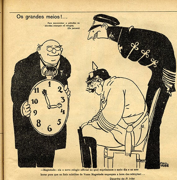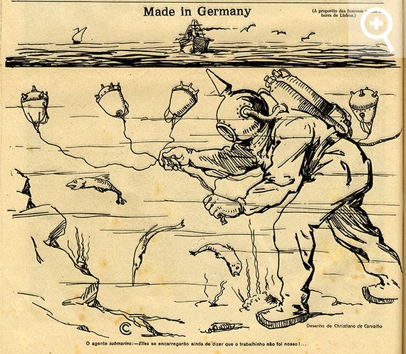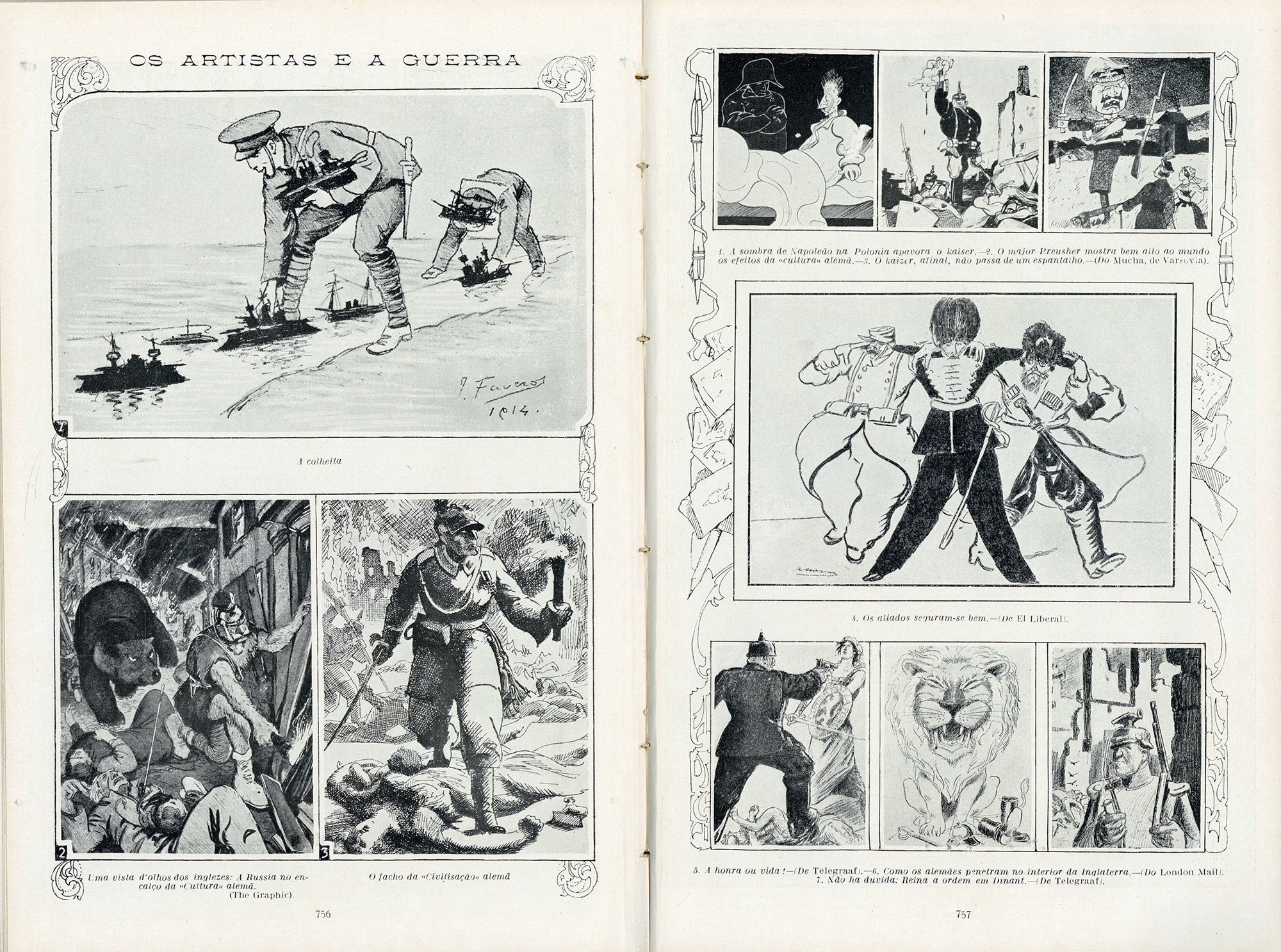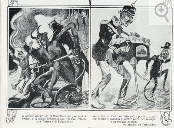 A guerra humorística através da ilustração e da caricatura é uma espécie de válvula de escape. A esta frente de combate propagandístico juntam-se ilustres, como Stuart Carvalhais.