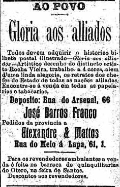 "De um postal com as transformações do bigode do Guilherme vendi mais de um cento numa só manhã! Os postais humorísticos esgotam-se mais depressa que os retratos dos generais."