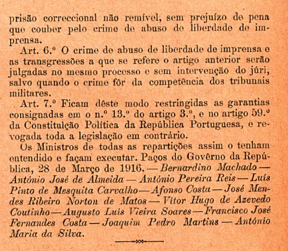Com o argumento do estado de guerra, a censura permitia apreender periódicos ou outros impressos, e escritos ou desenhos publicados.