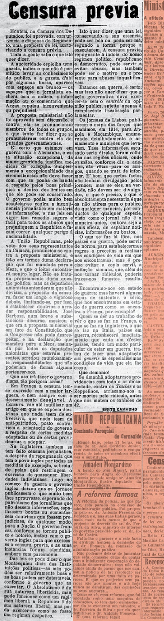Os vários jornais pronunciaram-se ainda sobre a “censura preventiva”, antes de o lápis azul entrar em acção.
