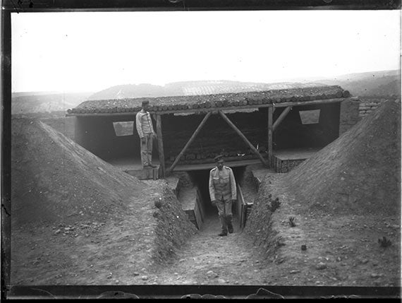 Depois de uma primeira parte da instrução militar básica, iniciou-se outro período, mais de acordo com o que então se passava na Europa: a guerra de trincheiras. É nesta fase que surge este postal, ficcionado, sobre um descendente que recorda em Tancos de agora o que viveu ali um seu avô, há 100 anos e como eram as trincheiras que aprendeu ele a fazer.