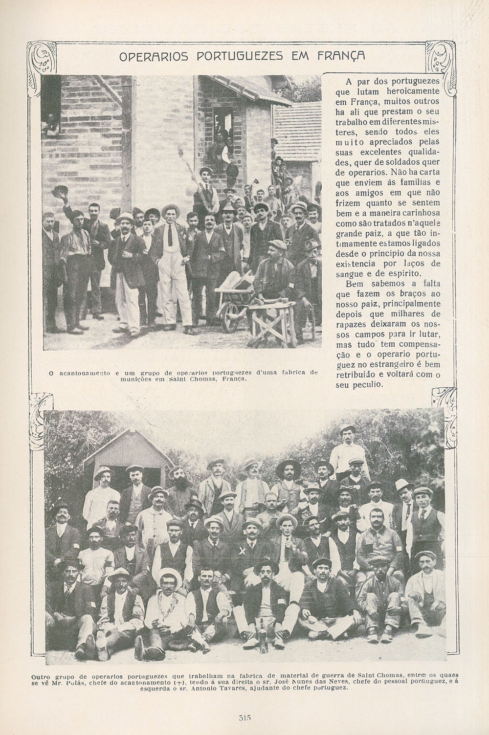 Três meses depois da declaração de guerra, o Governo francês pede ao chefe da missão portuguesa em Paris, João Chagas, que envie para França 15 a 20 mil operários não qualificados para trabalharem na indústria de guerra. O pedido vem assinado pelo subsecretário francês das Munições, Albert Thomas, que está encarregado de aumentar drasticamente a produção de obuses. Nos grandes calibres, a produção de 700 por dia deverá ser multiplicada por 70, até atingir os 50 mil por dia.