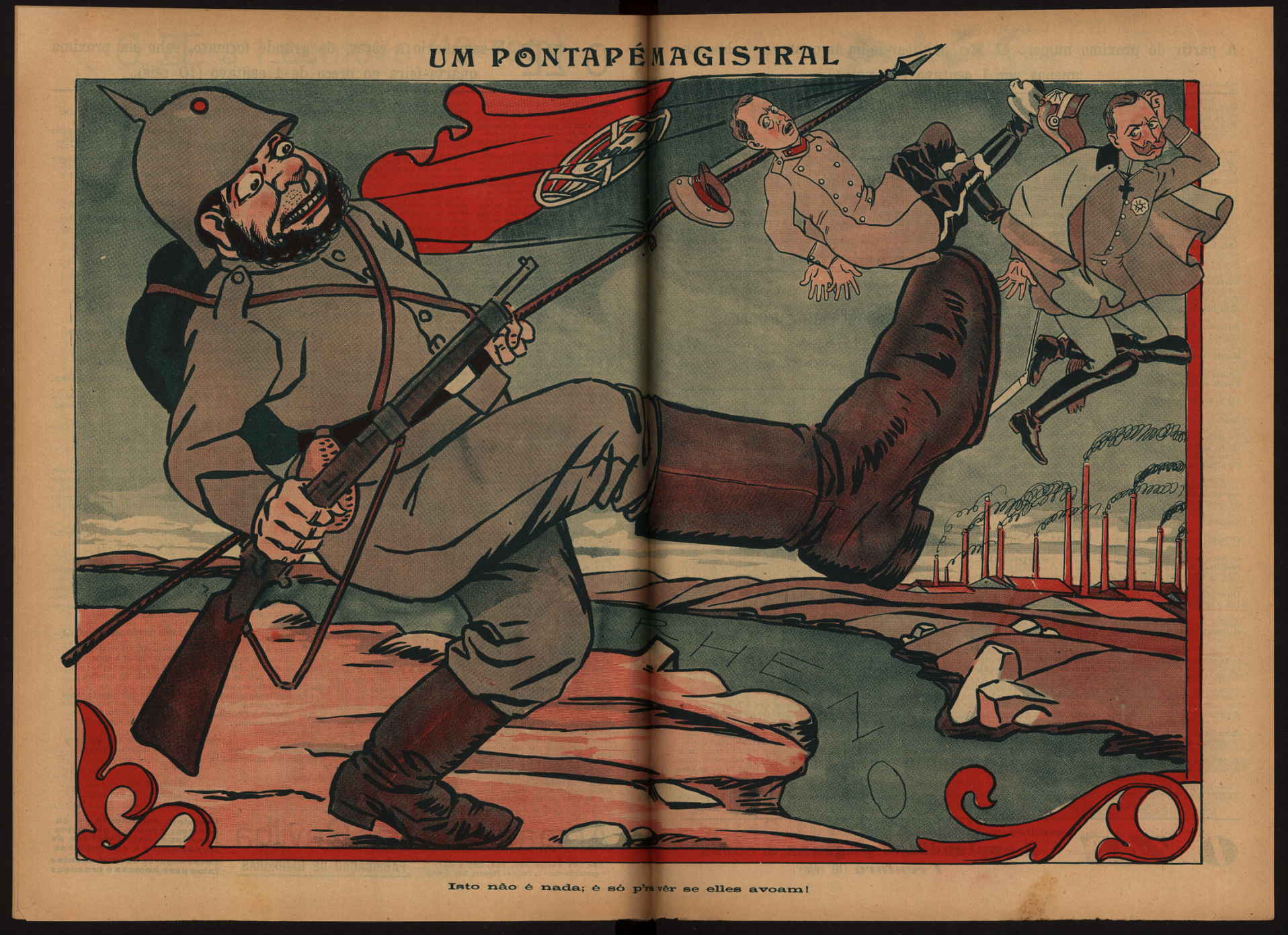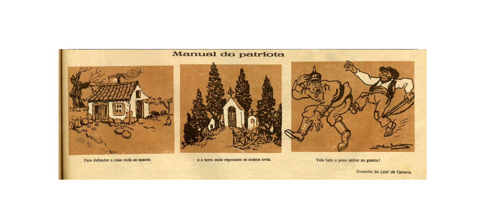 Apela-se à união e ao esforço nacional contra o Imperialismo alemão, contra o bárbaro, o Papão.