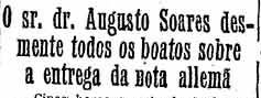 O Governo negou a existência da nota mas, a par desse boato circularam outros, de que muitos alemães se preparavam para partir a conselho da sua legação, a qual teria indagado também da possibilidade de comboios especiais para Madrid. Dias depois, todos os rumores se confirmaram e a Alemanha declarou guerra a Portugal, no dia 9 de março de 1916.