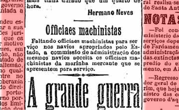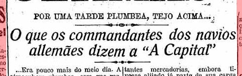 Dia 17 de fevereiro um repórter d’ A Capital – que assina apenas como V. - fazia uma ronda pelos navios alemães ancorados, a maioria desde 1914, no ‘Mar da Palha’.