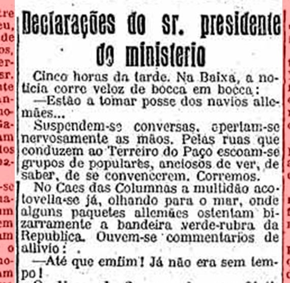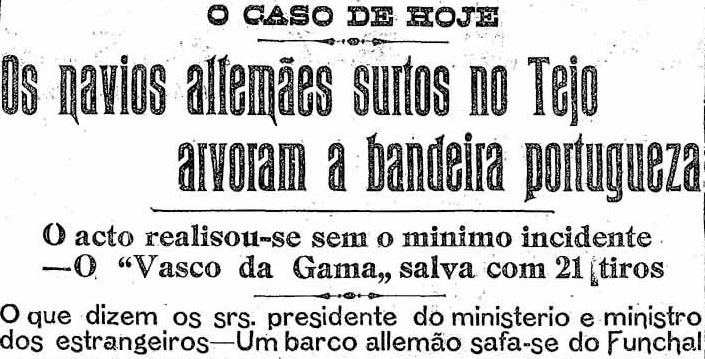 Terá sido aliás esse fator que levou a Alemanha a declarar guerra a Portugal. O Kaiser queria garantias de que os navios apresados “não se destinam a inimigos da Alemanha” e Lisboa não podia dá-las.
