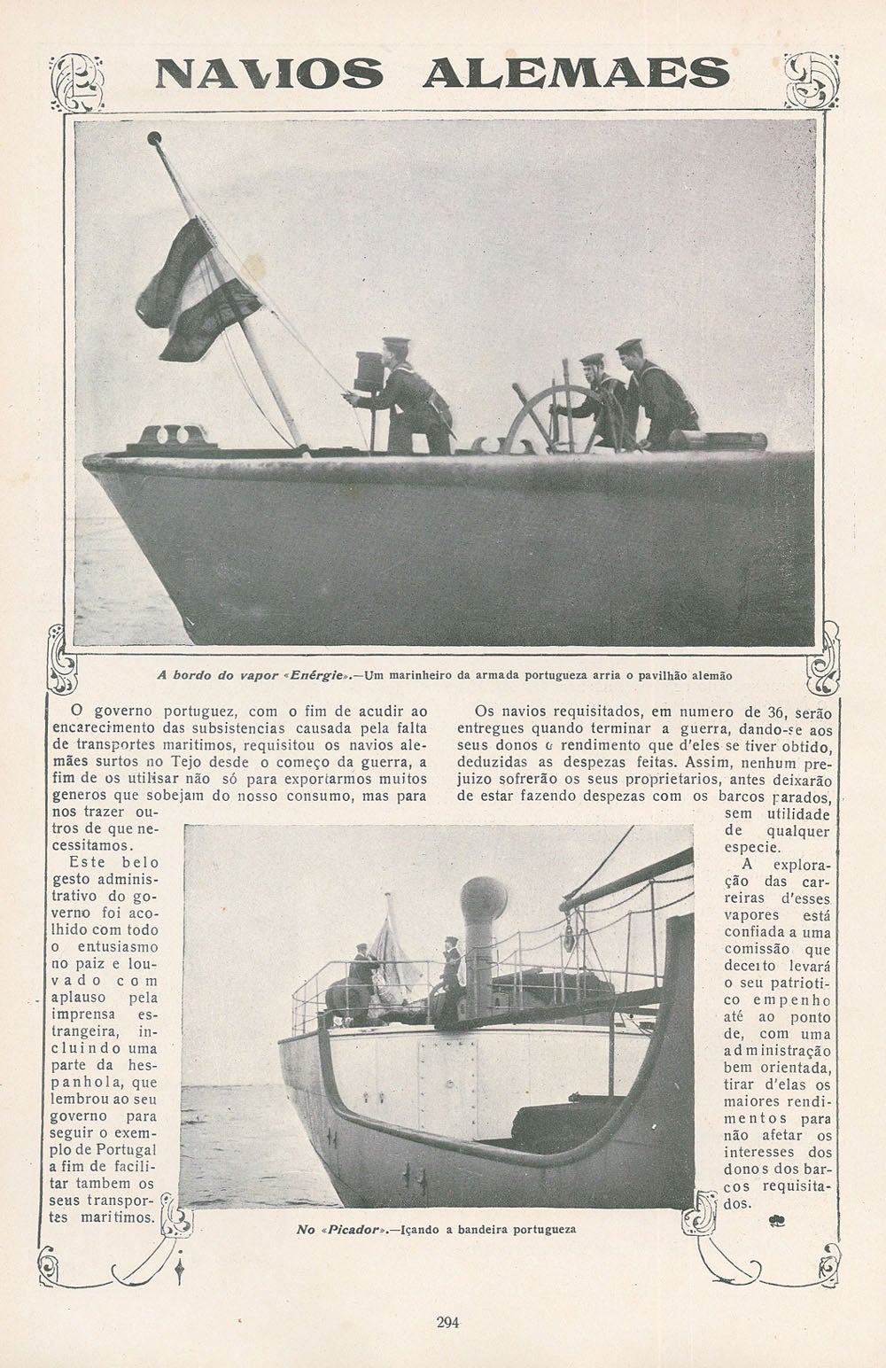 Em fevereiro de 1916, mais de 70 ‘vapores’ alemães e respetivas cargas estavam fundeados, a maioria desde 1914, em águas portuguesas.