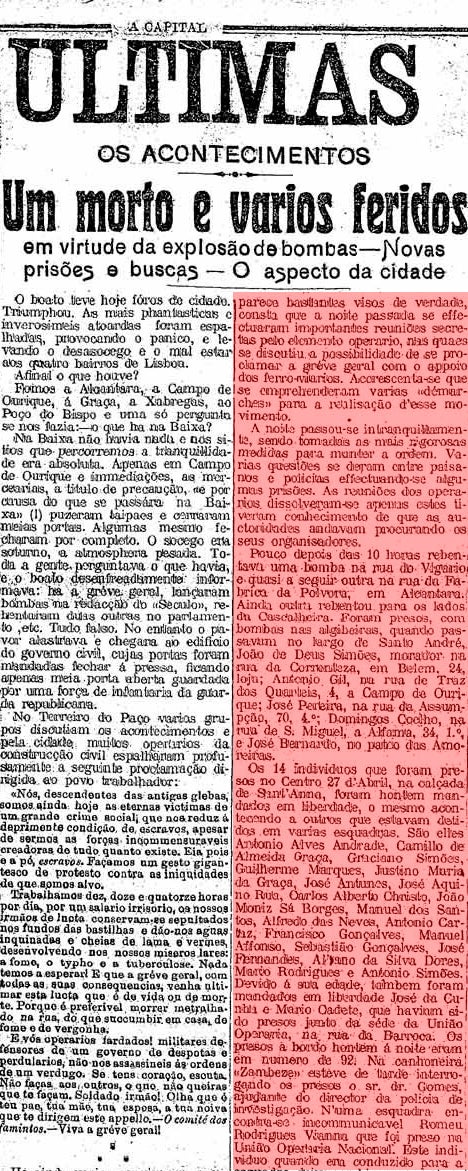 A tensão era tal que um mero boato de confusões ‘na Baixa’ podia encerrar a capital em poucas horas. Foi o que sucedeu, por exemplo, a 1 de fevereiro de 1916.