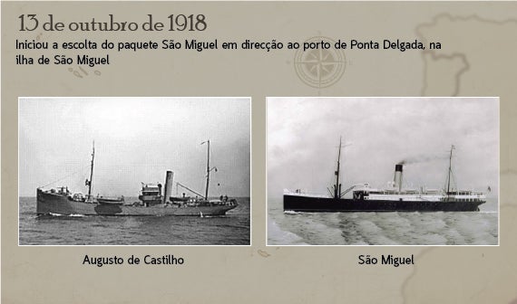 Ora nos Açores há um ataque de um submarino alemão ao porto de Ponta Delgada em Julho de 1917. E três semanas depois vai chegar uma força naval norte americana ao porto de Ponta Delgada. Quer dizer, os portugueses estariam à espera que chegasse uma flotilha britânica e o que acontece é que chega uma força naval norte-americana.