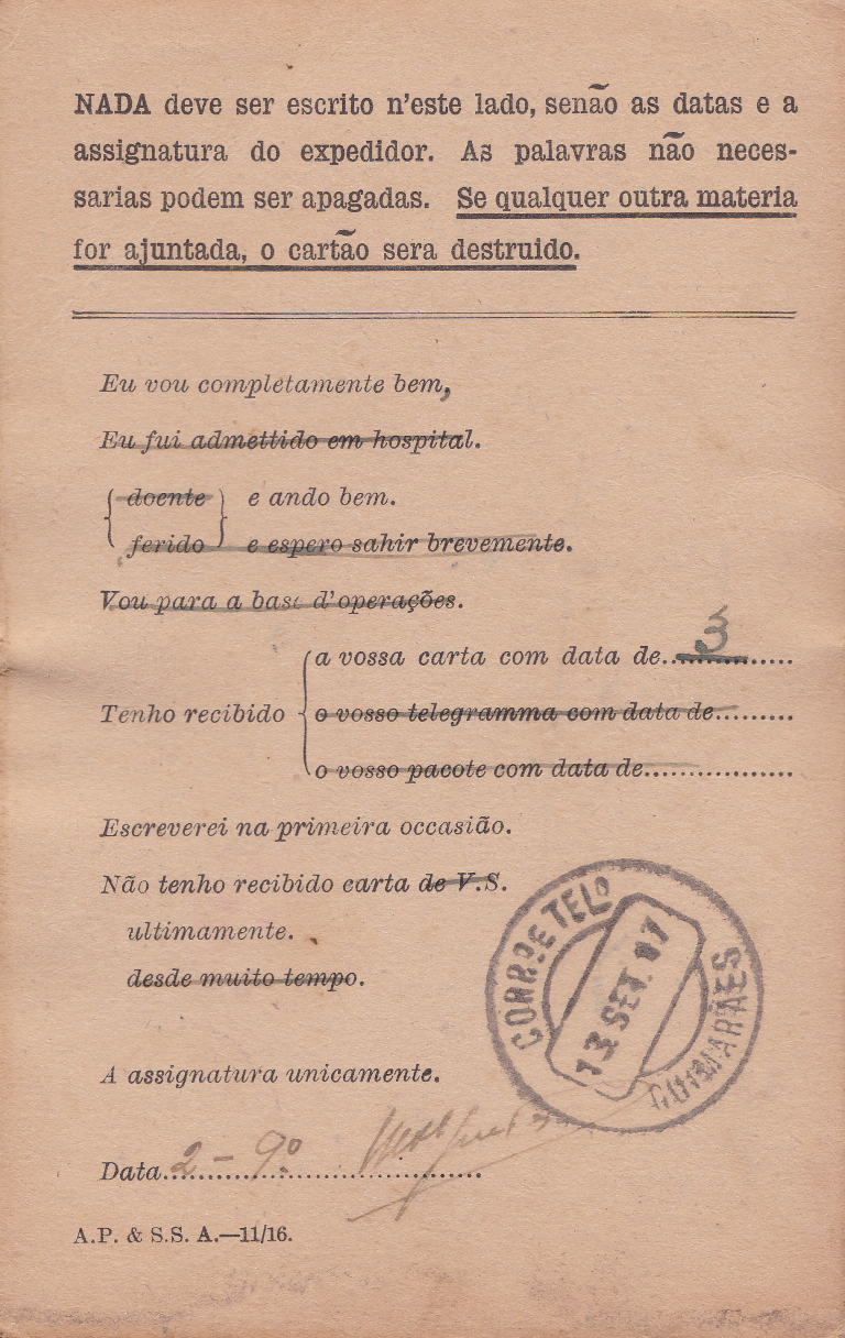 Decorriam tempos difíceis e a guerra isolava. A correspondência escrita era a única forma de aliviar a dor e a saudade dos que partiam em missão pela pátria.