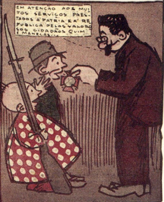 As célebres Aventuras do Quim e do Manecas permitem-lhe retratar a época, com todas as poses burguesas personificadas em tipos populares e miseráveis.