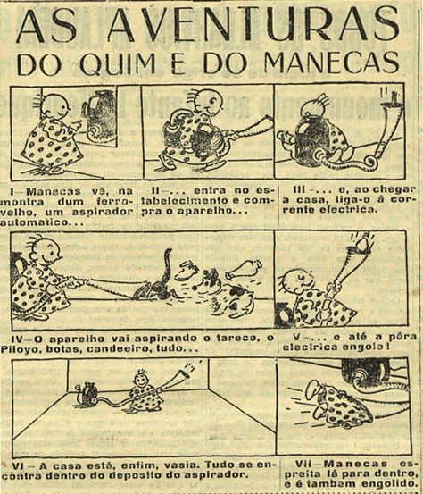 Até junho de 1916 a publicação sob formato tabloide era autónoma, mas em julho desse ano as tiras de BD foram integradas na Ilustração Portuguesa, em formato de revista. Nasciam assim as intrépidas aventuras de Quim e Manecas - um conjunto com mais de 500 episódios espalhados por vários jornais e revistas que durou até 1953.