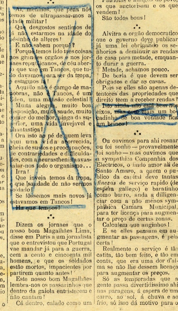 Por causa da censura, muitos dos relatos na imprensa forçavam a nota democrática que reinava no acampamento: os “casacas”, vulgo a classe superior calçava tão bem que parecia ter saído de uma sapataria da Baixa.