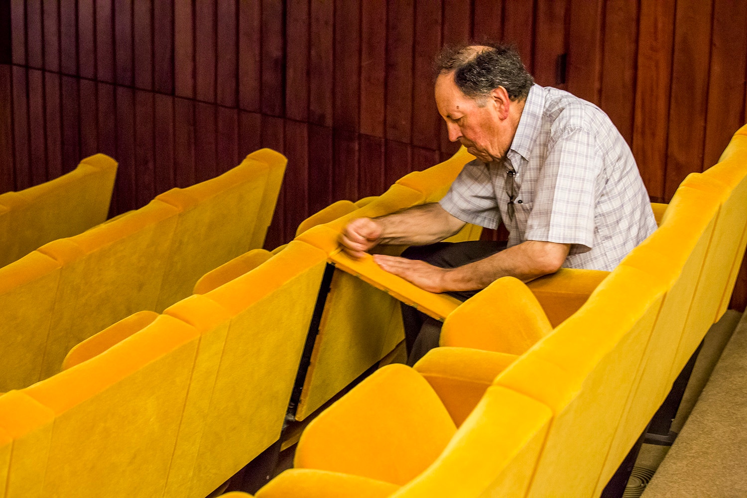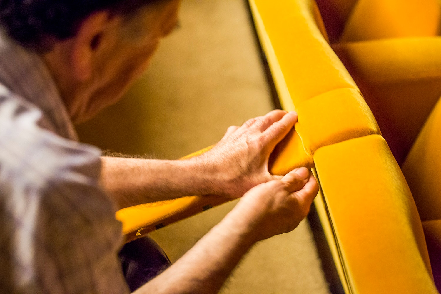 Há um portugues que já se sentou em cada um dos 1200 lugares do Grande Auditório da Gulbenkian. Conhecido por ter uma acústica extraordinária e um dos palcos principais da música em Portugal, serve também para Teatro, Dança e Ópera. Sentado numa das cadeiras, António Conceição conta ao repórter Mário Galego como conhece todas as cadeiras. Nuno Patrício fotografou.