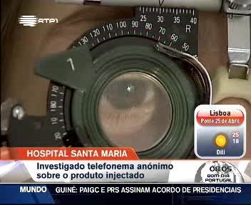 O caso dos seis doentes que perderam a visão no Hospital de Santa Maria poderá estar relacionado com a aplicação de um produto altamente tóxico. Este produto pode ter sido administrado juntamente com o Avastin, hipótese que terá sido avançada num telefonema anónimo para o hospital. Segundo o "Público", existe uma suspeita de sabotagem na injecção dada aos doentes.