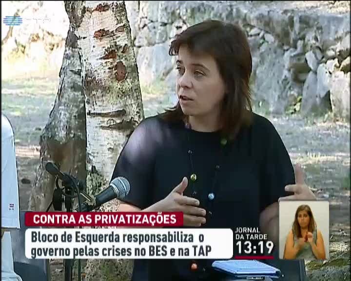 Catarina Martins responsabiliza o Governo pela crise que se está a viver no Grupo Espírito Santo e na TAP. Para a coordenadora do Bloco de Esquerda, o Executivo quer privatizar sectores estratégicos da economia, deixando impune o sistema financeiro.