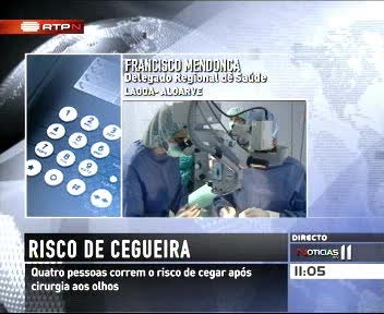 Quatro pessoas correm o risco de cegar depois de terem sido operadas numa clínica privada holandesa, no Algarve. Estão internados no Hospital dos Capuchos, em Lisboa, com prognóstico reservado já que têm uma infecção grave nos olhos que pode provocar a cegueira. O caso já está a ser investigado pela Inspecção-Geral da Saúde, mas já se sabe que a clínica em causa estava a funcionar sem licença.