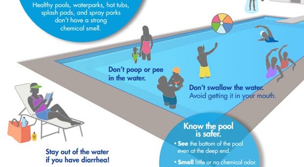 “Evitar engolir água da piscina”, “passar pelo chuveiro antes de nadar” e “lavar as mãos depois de ir à casa de banho ou de trocar fraldas” são três das regras que o CDC criou.