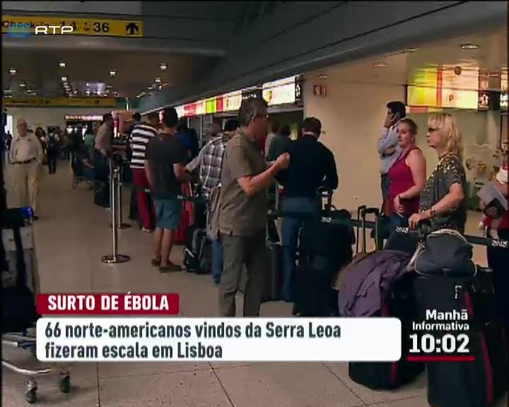 Sessenta e seis norte-americanos provenientes de um voo da Serra Leoa fizeram escala em Lisboa. Os passageiros foram analisados por equipas da Direcção Geral da Saúde no aeroporto da Portela. A Serra Leo é um dos três países afetados pelo surto de Ébola e por uma questão de segurança foi feito o rastreio. As análises não revelaram qualquer sintoma do vírus.