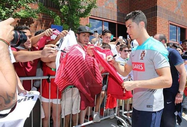 O público que irá assistir ao primeiro treino aberto de Portugal no Brasil, na quinta-feira, começou esta segunda-feira a levantar os ingressos, com a esperança de ver de perto Cristiano Ronaldo, o melhor jogador do mundo.