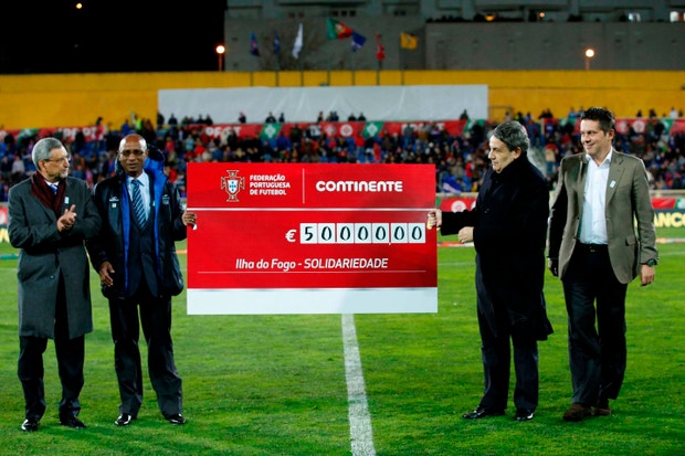 A receita do encontro no valor de 50 mil euros reverteu para as vítimas da erupção do vulcão da ilha do Fogo. Ao intervalo do jogo Fernando Gomes, presidente da Federação Portuguesa de Futebol, entregou o cheque a Jorge Carlos Fonseca, presidente de Cabo Verde, um homem satisfeito.