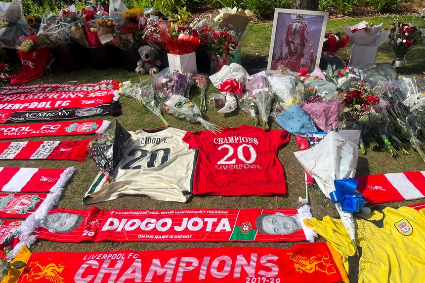“Obrigada por tudo, Diogo. Descansa companheiro”, “O rapaz de Portugal”, “RIP Diogo”, “Oh, ele veste o número 20. RIP Diogo, YNWA. Para sempre, red”, são algumas das muitas inscrições que os adeptos têm deixado em Anfield Road.