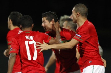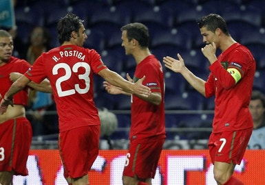 Eduardo (GR); Pepe; João Pereira; Fábio Coentrão; Ricardo Carvalho; Cristiano Ronaldo (C); João Moutinho; Raúl Meireles; Nani; Hugo Almeida; Carlos Martins
