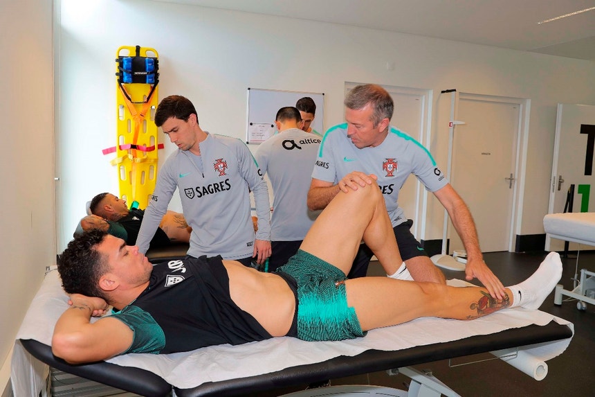A equipa das 'quinas' concentrou-se depois de almoço, realizou exames médicos e realizou o primeiro treino, na Cidade do Futebol, em Oeiras, com 14 dos 23 convocados para a fase final.