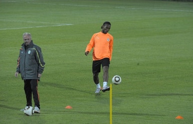 fazia exercícios de finalização, tendo caído depois de fazer um pontapé