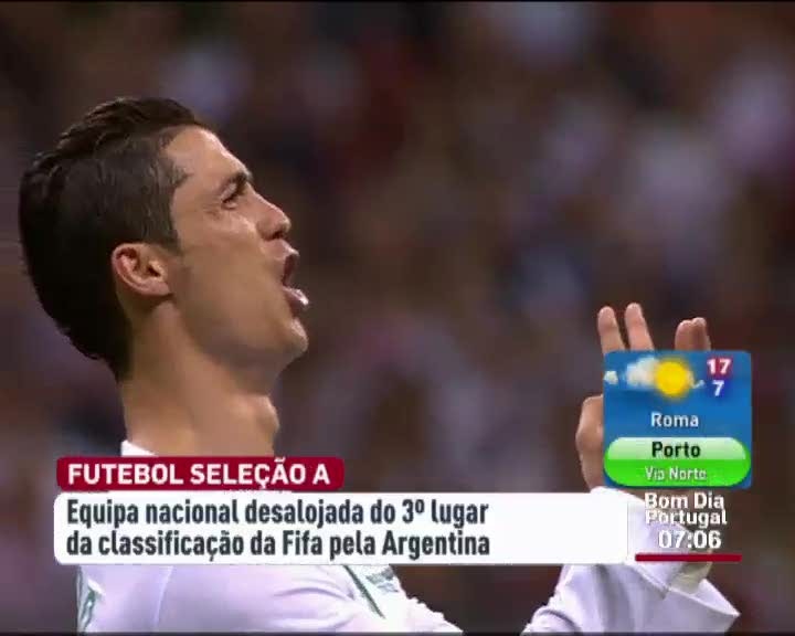 Portugal perdeu o terceiro lugar do ranking FIFA para a Argentina. A classificação continua a ser liderada por Espanha. Itália está logo a seguir a Portugal.