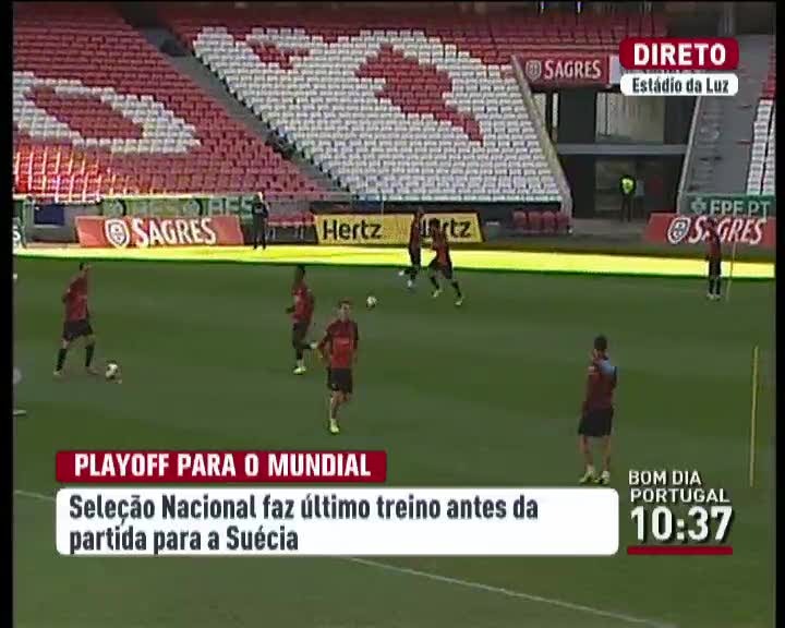 A Seleção Nacional voltou a treinar esta manhã no Estádio da Luz. O último teino antes da partida para a Suécia. A viagem para Estocolmo está marcada para a tarde deste domingo. Cristiano Ronaldo, Pepe e Fábio Coentrão não treinaram no trabalho de sábado. Da parte da tarde de sábado os jogadores tiveram folga e aproveitaram para sair do hotel onde estão hospedados.