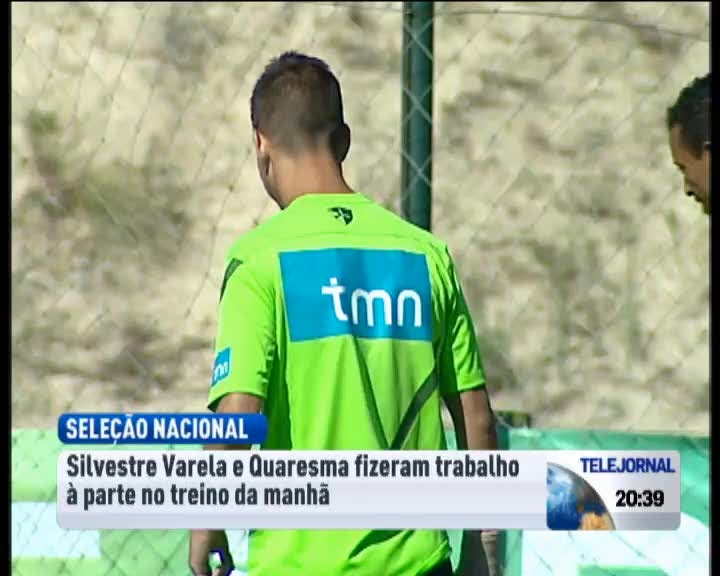 A Selecção está a preparar o jogo de sábado com a Turquia. Ricardo Quaresma e Varela não treinaram devido a problemas físicos, mas vão estar em condições para a partida no Estádio da Luz. João Pereira, o provável titular no lado direito da defesa no Europeu, diz que não se sente beneficiado pela ausência do campeão europeu José Bosingwa, que Paulo Bento deixou de convocar.