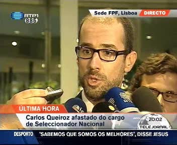 O presidente da Federação Portuguesa de Futebol, Gilberto Madail, anunciou, este fim de tarde de quinta-feira, o afastamento de Carlos Queiroz do cargo de seleccionador nacional e o pedido à mesa da Asembleia-Geral para convocar eleições.