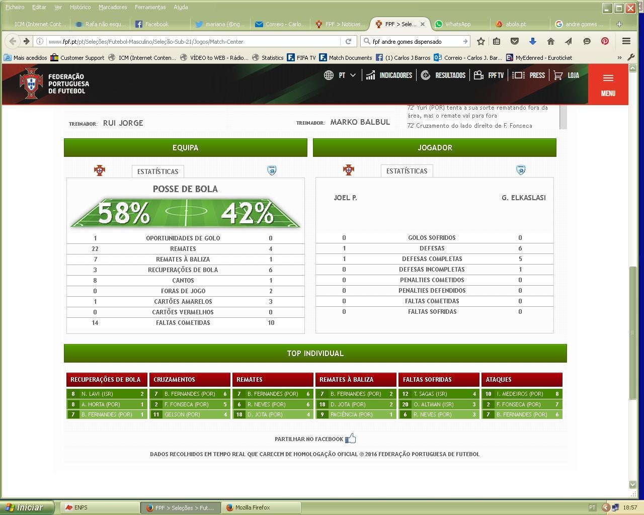 Com 7 vitórias em outras tantanta partidas Portugal não conseguiu impôr-se a Israel, averbando assim um empate a zero.
