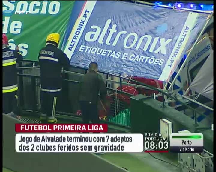 Nos minutos finais do encontro entre Sporting e Benfica, um adepto dos leões ficou ferido com gravidade. Caiu no fosso que separa as bancadas do relvado. Fraturou um braço e sofreu várias escoriações, mas está fora de perigo. Outras seis pessoas ficaram feridas, sem gravidade, na sequências do rebentamento de petardos e do arremesso de tochas na altura do golo do Benfica.