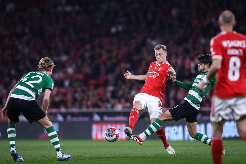 A segunda parte teve um início de loucos. Logo aos dois minutos, Gyokeres conduz a bola e à entrada da área encontra Hjulmand que com um remate em arco marca um grande golo, sem hipóteses para Trubin.
